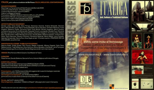 Il 3 ottobre alle ore 18:30, in occasione della Giornata nazionale del Contemporaneo (AMACI), presso il museo MAUI a Teano (CE), sarà presentata la prima edizione della expò – pubblicazione “ITALICA – le Arti del Bel Paese”.
