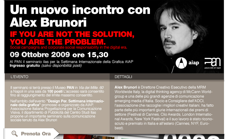 CHIUSO PER RAGGIUNGIMENTO NUMERO ISCRITTI a cura di Mario Piazza da martedi 6 a venerdì 9 ottobre 2009 Museo Madre Programma. I libri riempiono i nostri ambienti, le nostre giornate, fanno parte dell’arredo delle nostre case e fanno parte del corredo culturale che costruiamo giorno per giorno. Sono strumenti da osservare e da investigare. Da da toccare e da guardare. Ma come si progetta un libro? Il workshop intende proprio investigare quest’area del progetto grafico partendo dall’idea di sistema: il tutto e la parte; la copertina come manifesto, come strumento appetibile per la vendita e l’interno per lo studio e la lettura. Il formato, la gabbia, la carta, le tecniche di stampa. L’apparato grafico, testuale e iconografico tesi a costruire un sistema che è al tempo stesso contenuto e forma. Condizioni - l'workshop prevede la traduzione in italiano, - sarà presente un tutor a disposizione degli iscritti, - 25 è il numero max di partecipanti per ogni workshop.