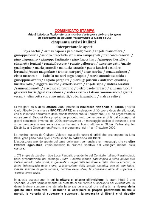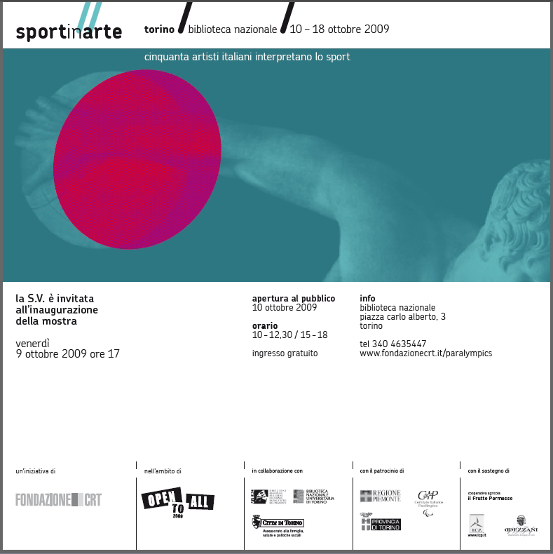 Pittura, scultura, fotografia, ricerche digitali e installazioni sono le sezioni in esposizione fino al 31 ottobre 2009. Gli artisti – protagonisti – di ITALICA sono: Piergiorgio Baroldi (presidente Arte&Forte Venezia), Ferruccio Maierna, Donato Lotito, Cinzia Guido, Gene Pompa, Domenico Asmone, Andrea Schiavetti, Gennaro Barci, Silvia Borello Lenta, Maria Teresa Sabatiello, Bruno Giordano, Christian Montuoni, Nicola Damiano, Paolo Santo, Fulvio Angelino, Massimo Fedele, Domenico Daoli, Carla Bertoli, Alfredo Avagliano, Mario Carpine, Loredana Cacucciolo, Ennio Montariello, Pasquale Fameli, Lucio Ippoliti, Osvalda Pucci, Riccardo Barbato e gli HD Art Project, Blu Kobalto, Marialuisa Sabato, Alessandro Bulgarini, Angelo Mascolo, Francesco Disa, Matteo Bosi, Daniela Grifoni, Attilio Michele Varricchio, Daniela Baldo, Stefania Catastini, Umberto Gori Rossi, Dario Giancane, Giovanni D’Onofrio, Florentina Resende, Maria Rafael, Laura Cassetti, Gabriele Perissinotto, Gianna Ruiu, Enza Caplis ed altri 10 nuovi artisti inseriti in PROPOSTE PER UN COLLEZIONE – opere di piccolo formato.