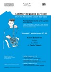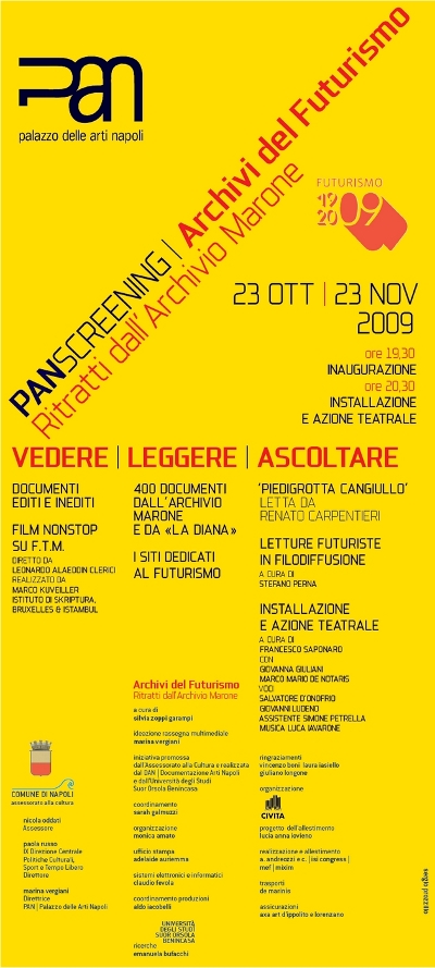 note: iniziativa a cura del Teatro Stabile d’Innovazione Galleria Toledo diretta da Rosario Squillace in collaborazione con Roberto Cerenza, Antonello Centomani con la partecipazione di: Università degli Studi di Napoli L’Orientale Università degli Studi Suor Orsola Benincasa PAN - Palazzo delle Arti Napoli Istituto Francese di Napoli Le Grenoble Penguin Cafè si ringraziano: Francesco Armitti, Rossella Bonito Oliva, Gennaro Carillo, Monica Dall’Asta, Mario Franco, Marco Grosoli, Adriano Lanzillo, Gabriella Marmorale, Diego Nuzzo, Andrea Peraro, Stefano Perna, Guglielmo Pescatore, Martine Segonds-Bauer, Valeria Valente, Marina Vergiani,