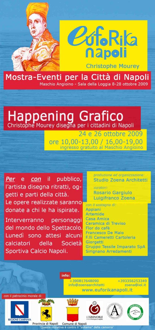 I 180 disegni sono esposti su grandi pannelli secondo una sequenza che segue quella dell'Atlante "Euforika Napoli" pubblicato nel 2008. Personaggi e scorci della città si alternano in "gruppi" da sei a nove disegni per ciascun pannello, come nell'Atlante. La parte finale è invece dedicata a 19 nuovi disegni, presentati per la prima volta al pubblico ed esposti singolarmente.