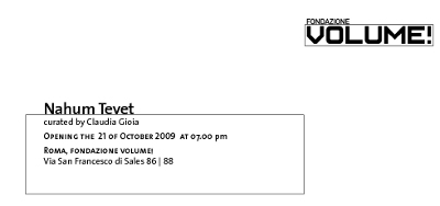 Inaugurazione giovedi' 29 ottobre 2009, ore 17,30 - in presenza dell'artista