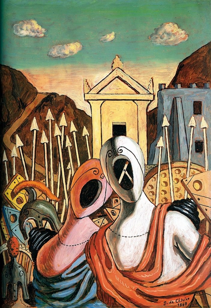 Giorgio De Chirico, Ettore e Andromaca davanti a Troia, 1968, olio su tela, Fondazione Giorgio e Isa de Chirico, Roma