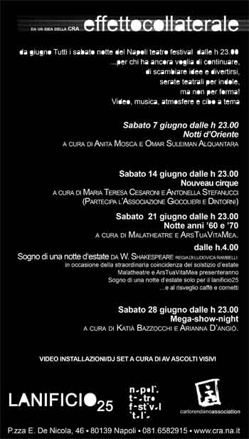 L’ultimo sabato notte del Napoli teatro festival dalle h 23.00 al Lanificio25
