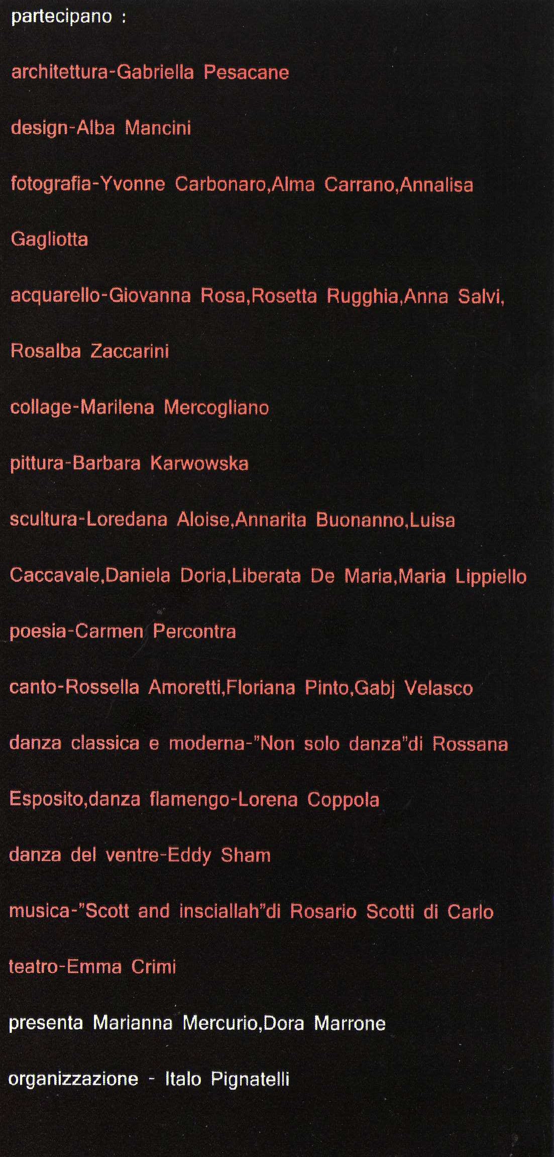 patrocini: Alto Patronato del Presidente della Repubblica, Regione Campania, Assessorato alla Cultura del Comune di Napoli